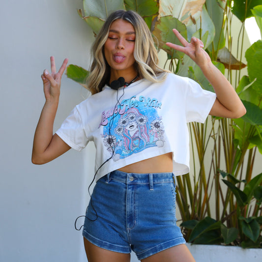 Kulani Kinis Leave Her Wild Crop Tee Shirt - Shell White