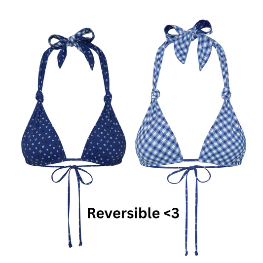 Frankies Bikinis Kealy Reversible Halter Bikini Top - Starry Gingham