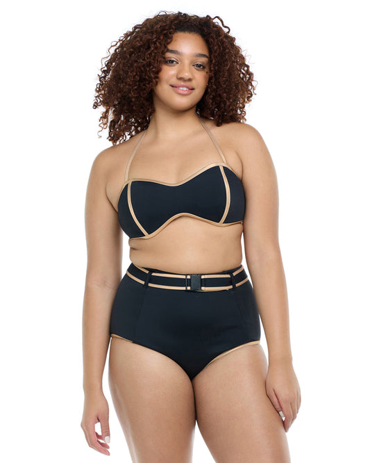Body Glove Undersea Tainted Love Retro Bandeau Bikini Top - Black Gold
