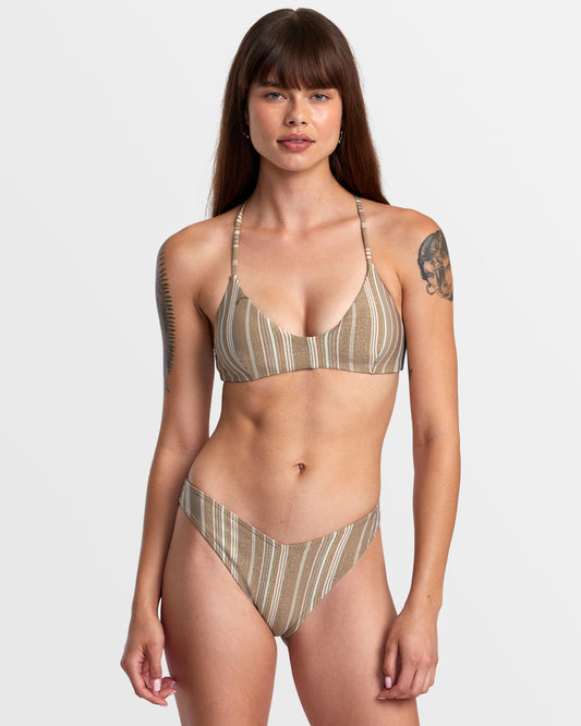 RVCA Pins Lurex V-Front French Bikini Bottoms - Dark Khaki
