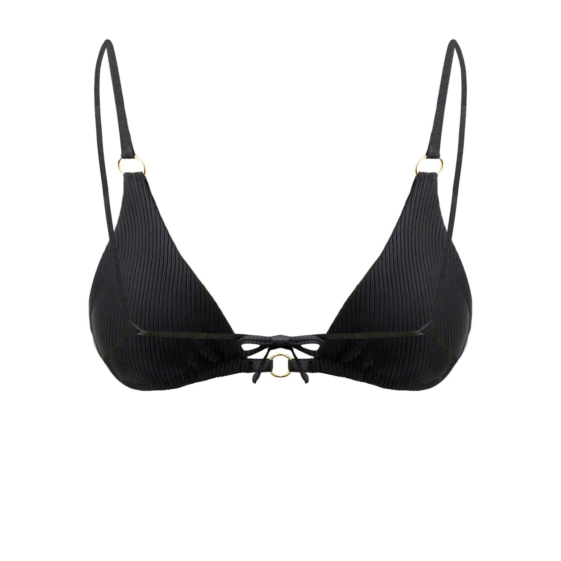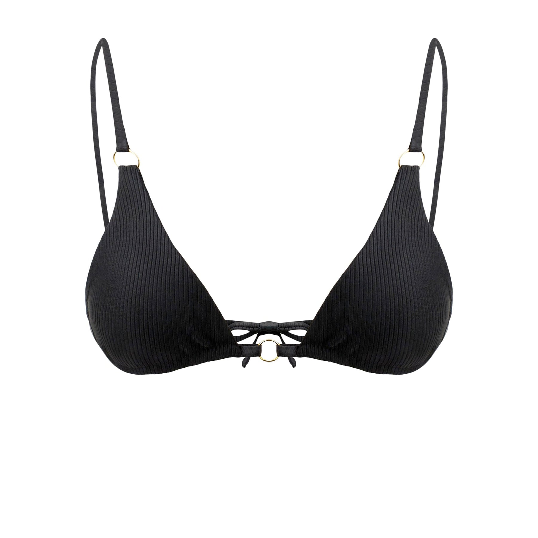 An elevated classic with a gorgeous gold ring and metal-tipped tie embellishments, the Triangle top is anything but basic. Elegant with a hint of a seductive edge, the design is beautiful in its simplicity and effortlessly chic.