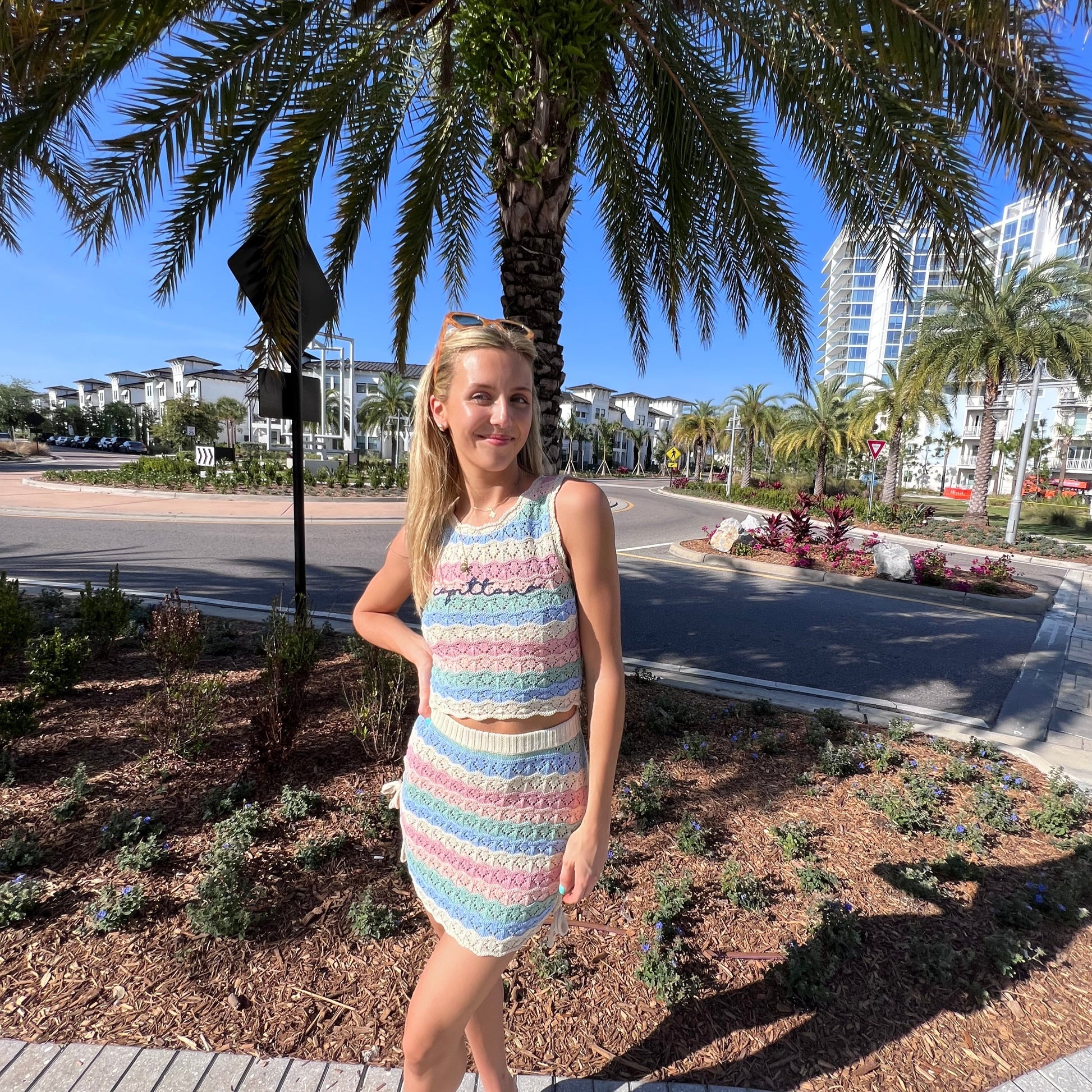Add a pop of color and detail to your wardrobe with the Capittana Helena Knitted Skirt! Handcrafted with fair pay and in a safe work environment for women in Peru, this multi-color crochet mini skirt features tie sides for that extra touch of love. Perfect for those who love to stand out and support ethical fashion.