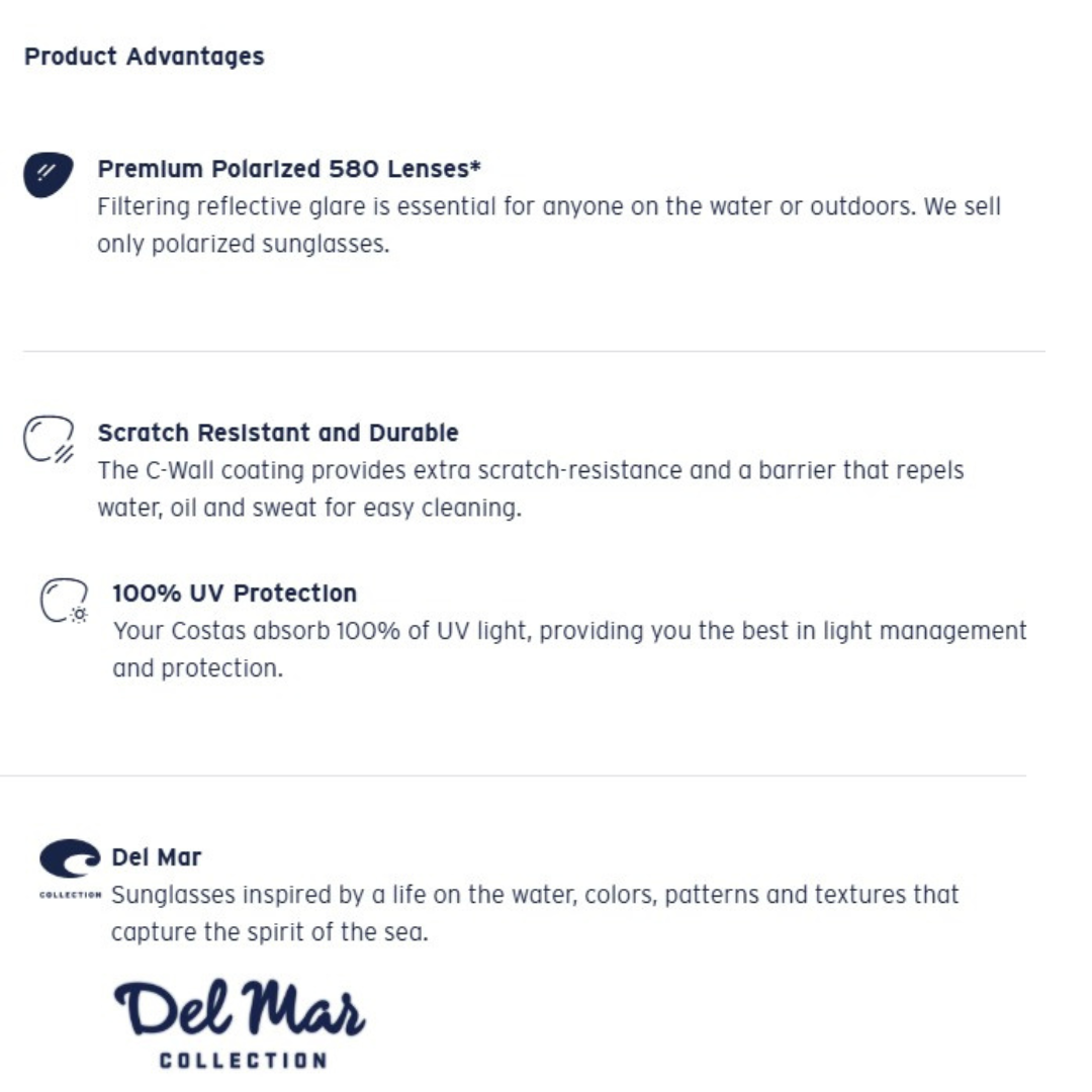Costa 580® lenses were designed by in-house light spectrum experts to enhance colors because standard sunglass lenses fell short.