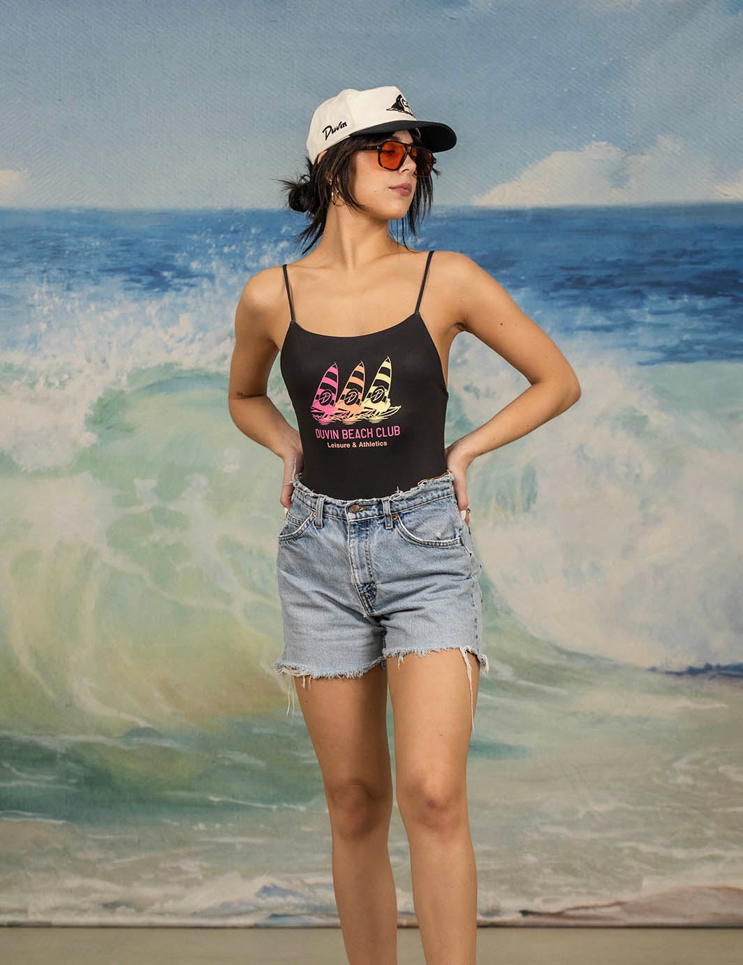 Get ready for summer with the Duvin Tailwinds One Piece! This sleek and stylish swimsuit from Duvin Design features a classic low-back design and fully adjustable straps. With minimal and moderate coverage and a cheeky style, it's perfect for soaking up those sunny day vibes. Plus, it's versatile enough to double as a bodysuit. 84% Polyester, 16% Spandex.