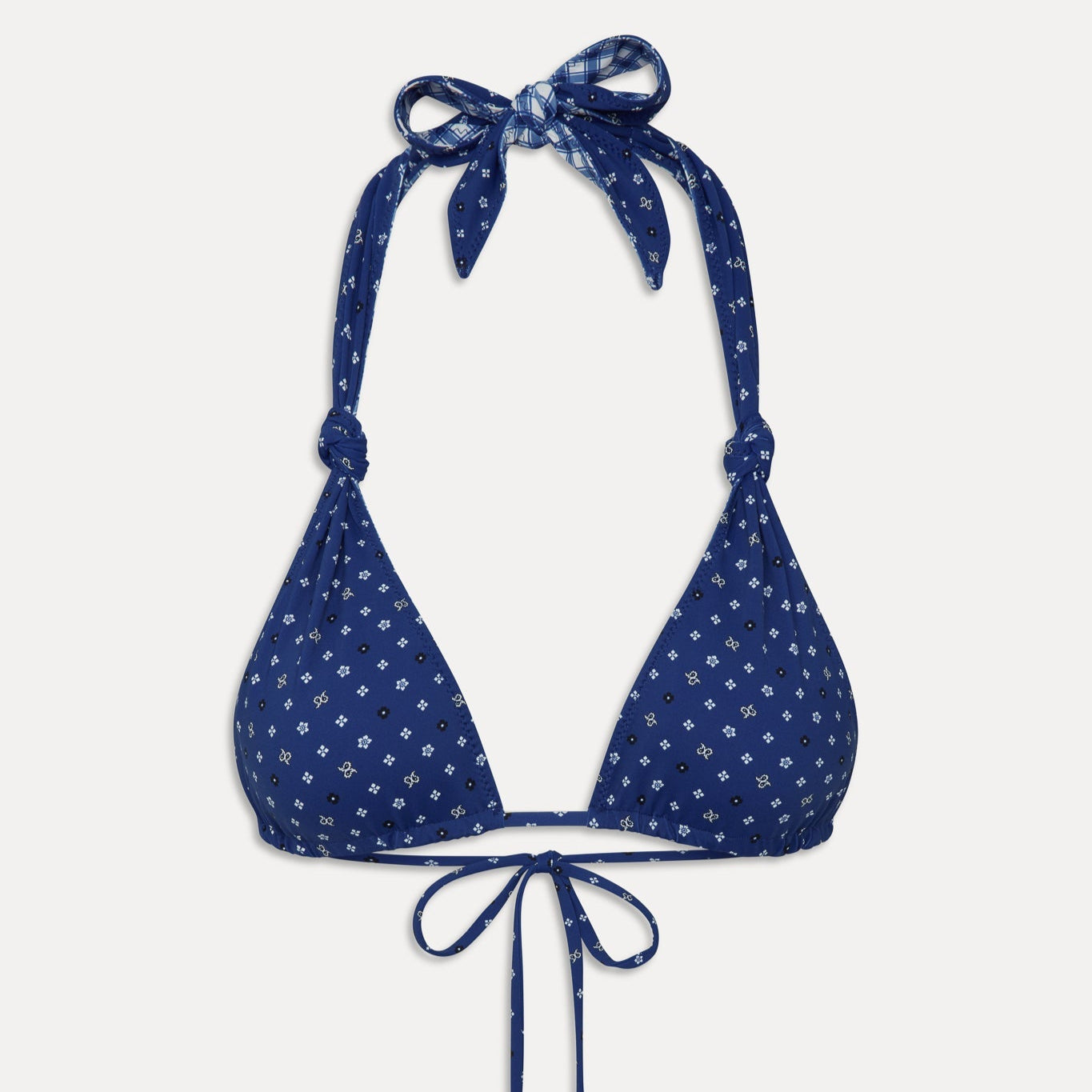 Introducing the Kealy triangle bikini top, an ode to early 2000s bombshell swimwear. The Kealy bikini top is designed with halter support and knot ties that adjust to your coverage preference.