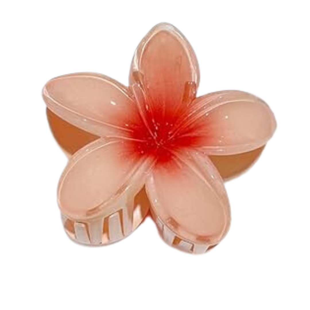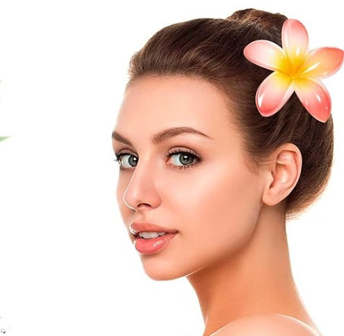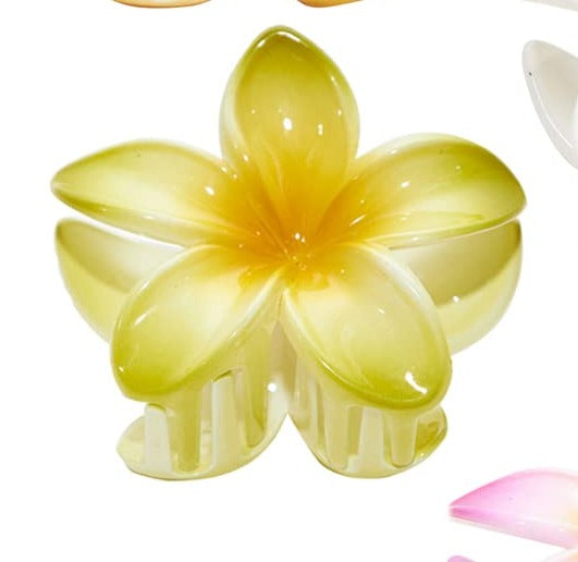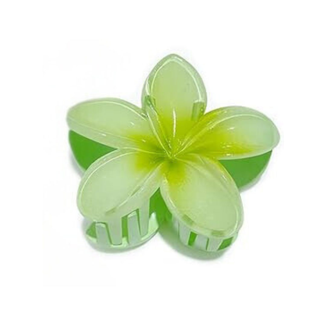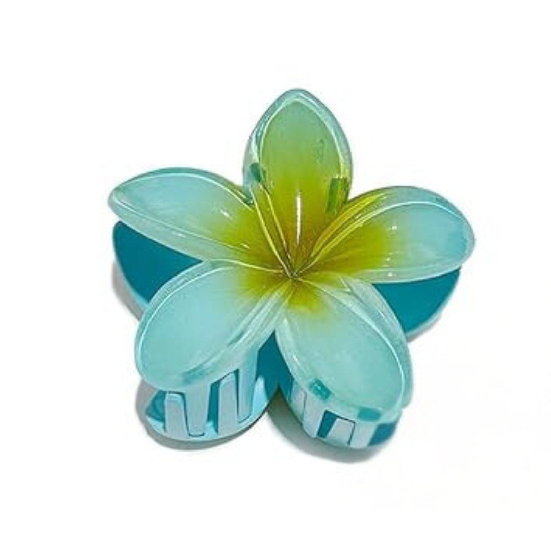 Elevate your look with our Hawaiin Flower Hair Claw Clip. Made with a hawaiin plumeria design, it's perfect for adding a touch of the tropics to any outfit. With large teeth, it's suitable for all hair types and can be worn in your hair or clipped to your purse for a cute extra touch. Available in 6 vibrant colors.