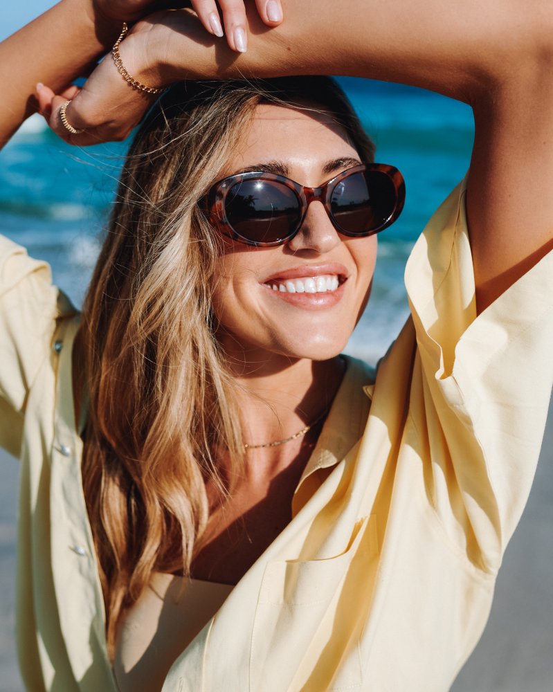 Slip on these oval shades and become the instant envy of any beach. They’re sweet and chic but still make a major statement, built with hand-polished polycarbonate frames and 100% Polarized lenses. Recommended for medium-sized face shapes, these retro cuties are just what you need to round out your collection.