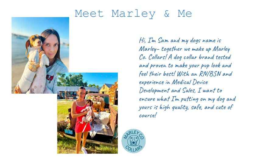 About Marley & Co.: Owner Sam and her doggo Marley love creating Marley & Co. collars. Marley & Co. is a dog collar brand tested and proven to make your pup look and feel their best. With an RN/BSN and experience in Medical Device Development and Sales, Sam wants to ensure what she is putting on Marley and your pup is high quality, safe and cute of course.