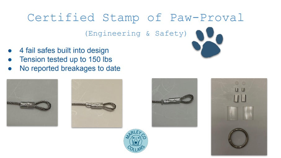 Unleash your pup's beach vibes with Marley & Co.'s locally made dog collars. Perfect for the Florida doggo living the beach lifestyle. Diggin' it, fur sure! 🐾Marley & Co. is Certified Stamp of Paw-Proval for engineering & safety - 4 fail safes built into design, tension tested up to 150 lbs and no reported breakages to date.
