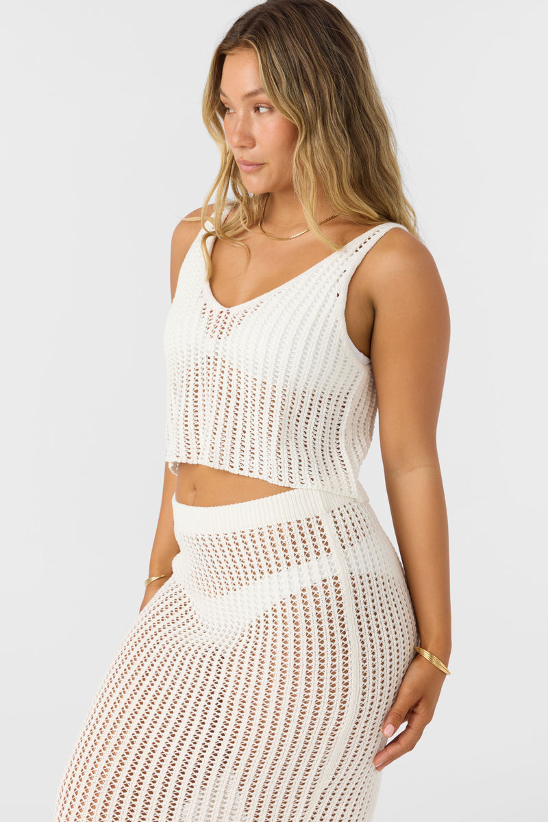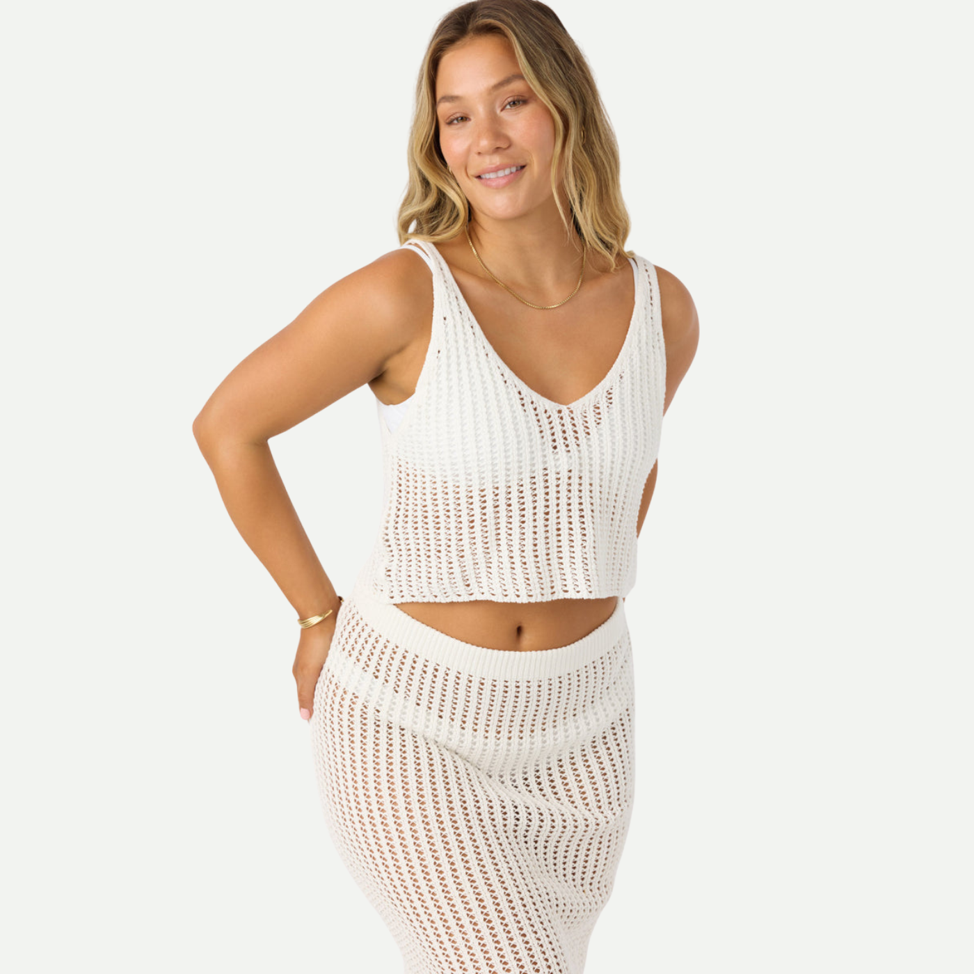 Stay stylish at the beach with the O'Neill Ryan Cover-Up Tank. Made from premium cotton crochet fabric, this tank features a cute crochet design and a flattering v-neckline. The skimmer length adds a trendy touch, making it the perfect cover-up for any swimwear.