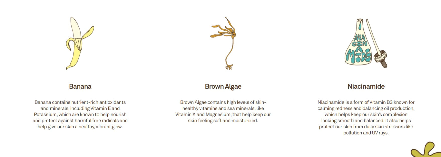 Seal in the good stuff. Our Hydrating Serum contains nourishing Banana, Brown Algae and Niacinamide and works as the first layer of moisture and protection in our daily skin care routine.