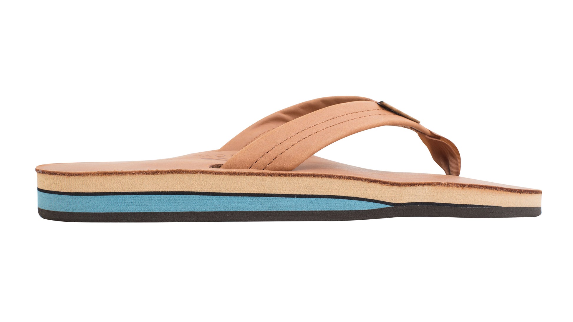 The top sole is classic finished leather, and is embossed with the Rainbow® logo. The 1" classic leather strap is double stitched, and the nylon toe piece is secured with a box X stitch, all sewn with bonded nylon thread.