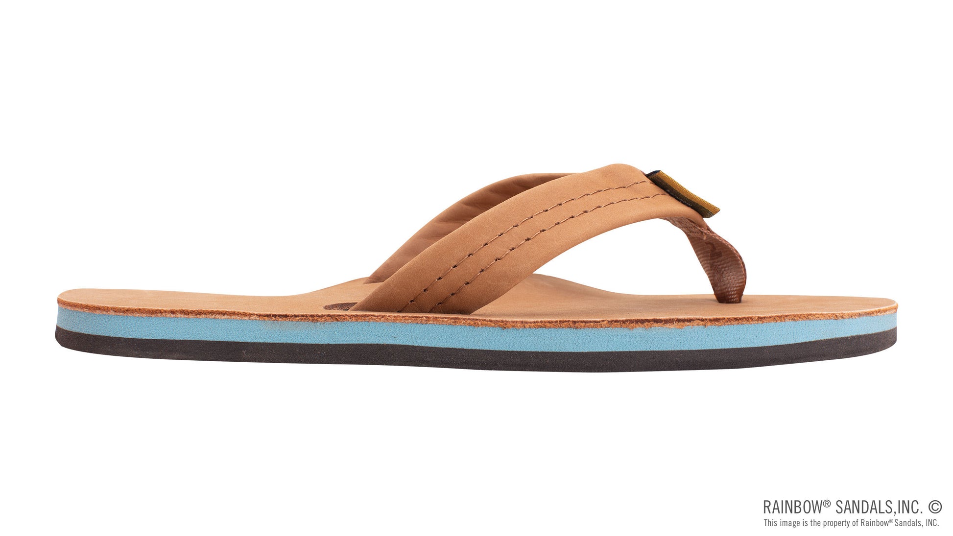 The single layer classic leather sandal is made of top grade leather that has a polished top sole giving it a fresh clean look. It is also embossed with the Rainbow® logo. The 1" strap, also classic leather is double stitched, and the nylon toe piece is secured with a box X stitch, all using bonded nylon thread.