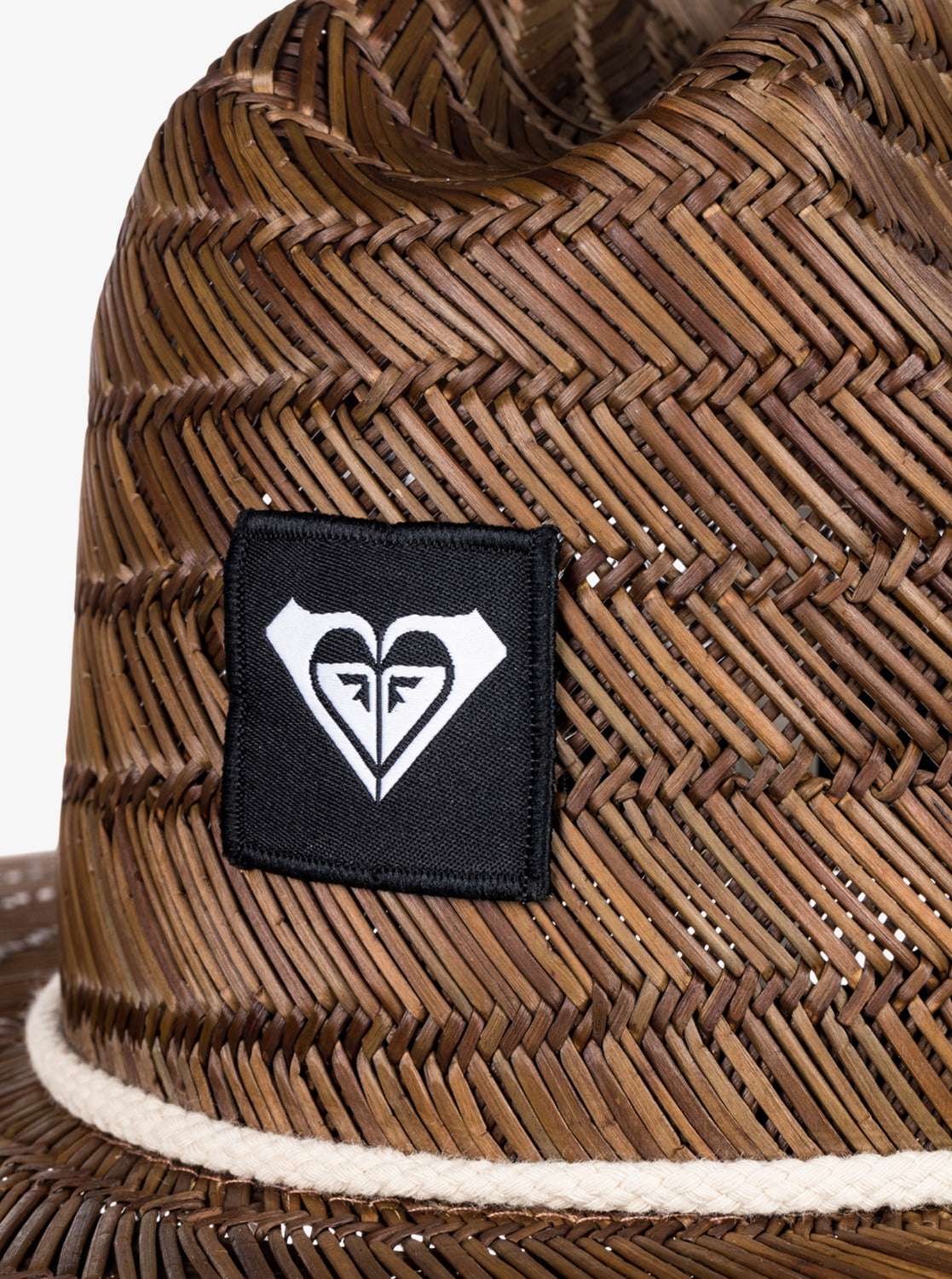 A must-have in your beach bag, this wide-brim straw hat has a ROXY logo patch at the front and an adjustable chin strap to keep it from blowing away.