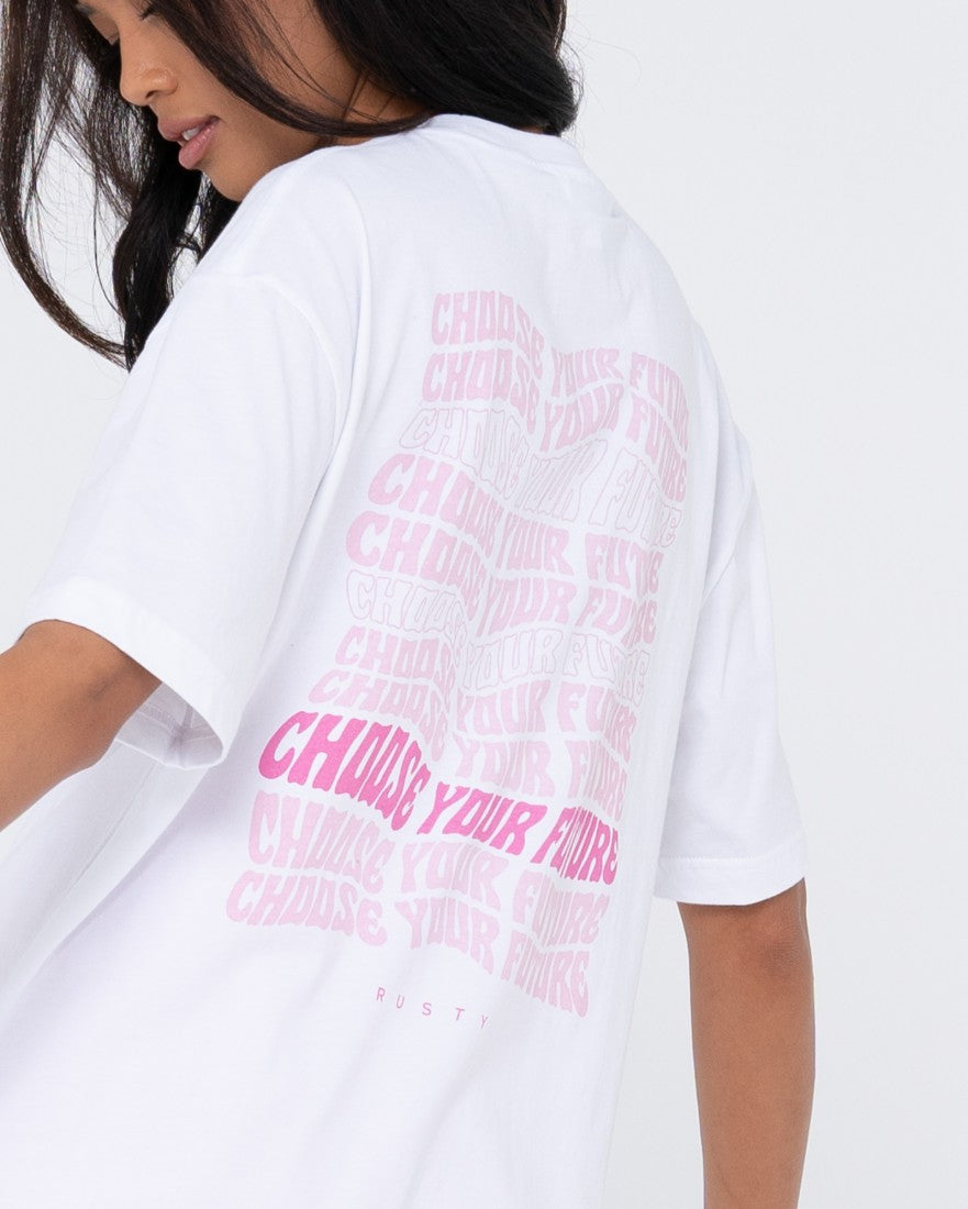 Short Sleeve Oversized Fit Tee With Front And Back Print. Material: Organic Cotton Jersey - Mid Weight.