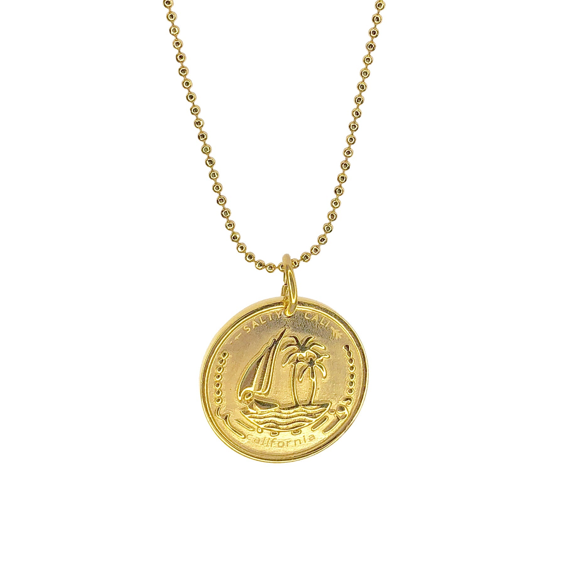 Inspired by the laid-back, sun-kissed vibes of California, this unique coin pendant captures the spirit of the Golden State.