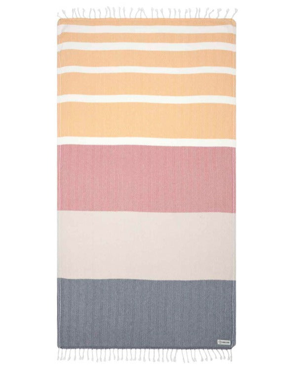 Multi color stripe design, made from Turkish organic cotton for a softer hand feel and a better sustainable product, dobby texture weave, twisted tassels, quick dry and sand resistant. Regular size approx 37" X 67" (94cm x 170cm) Finished towel weight 0.82 lbs
