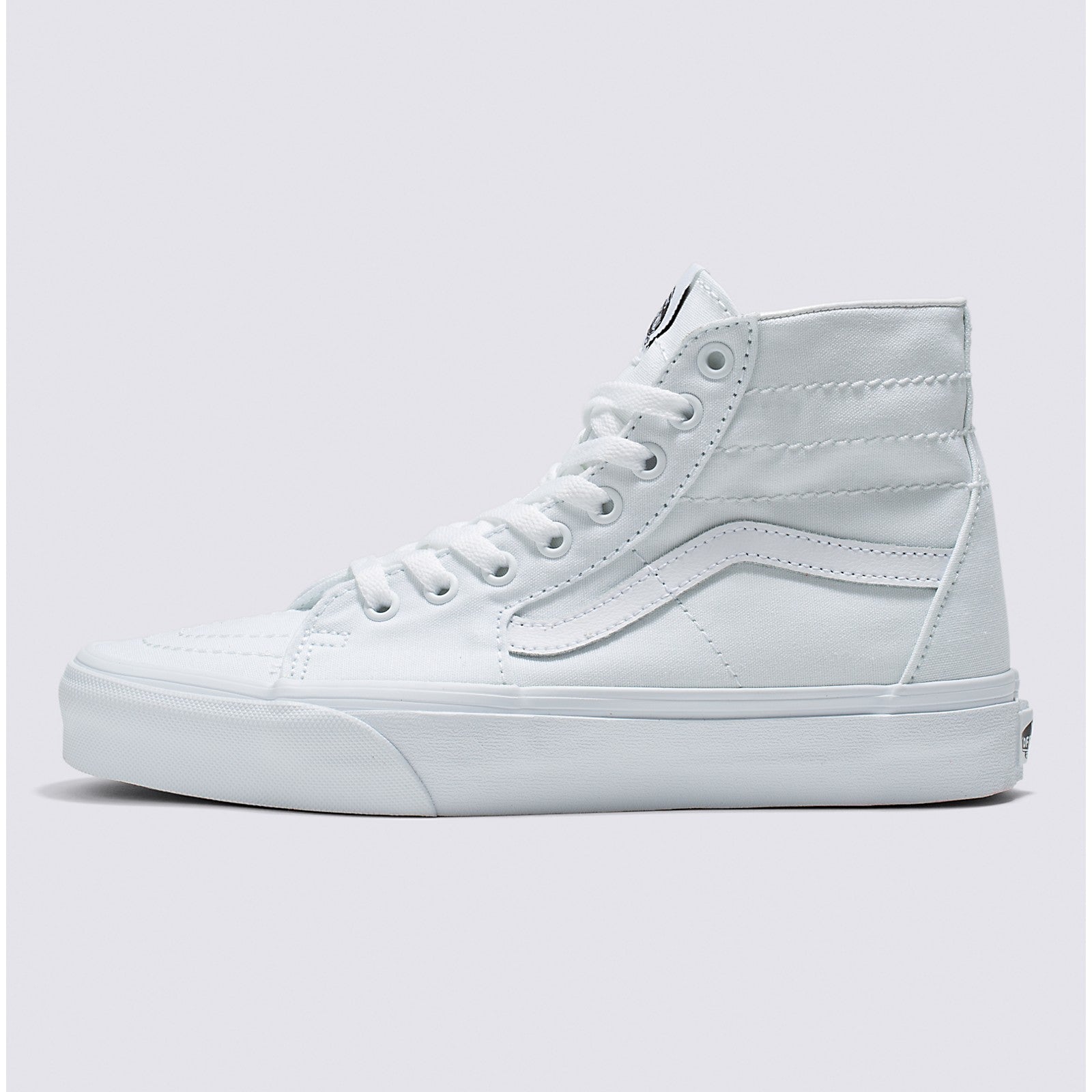 The future of shoes is in deconstruction, stripping back the Classics in search of simplicity and sophistication. Vans Canvas Sk8-Hi Tapered shoes have nailed all of the above. The sturdy canvas uppers and signature rubber waffle outsoles provide the trademark Vans stability, but the crisp color and stunning tapered finish lift the Canvas Sk8-Hi tapered shoe to great heights. The tapered design allows for a slim fit, adding a new coat of graceful paint to the thrilling Vans canvas. “Off The Wall” means being ahead of the game at all times, and Vans Canvas Sk8-Hi Tapered shoes are off in the distance, the home stretch in sight.